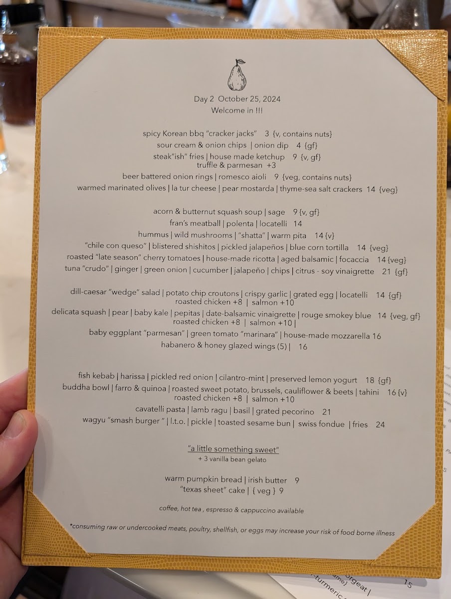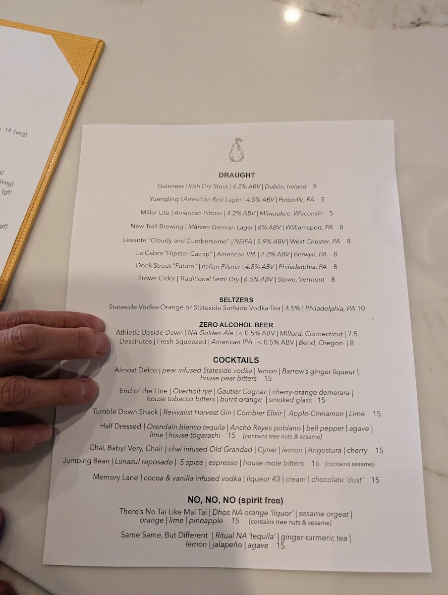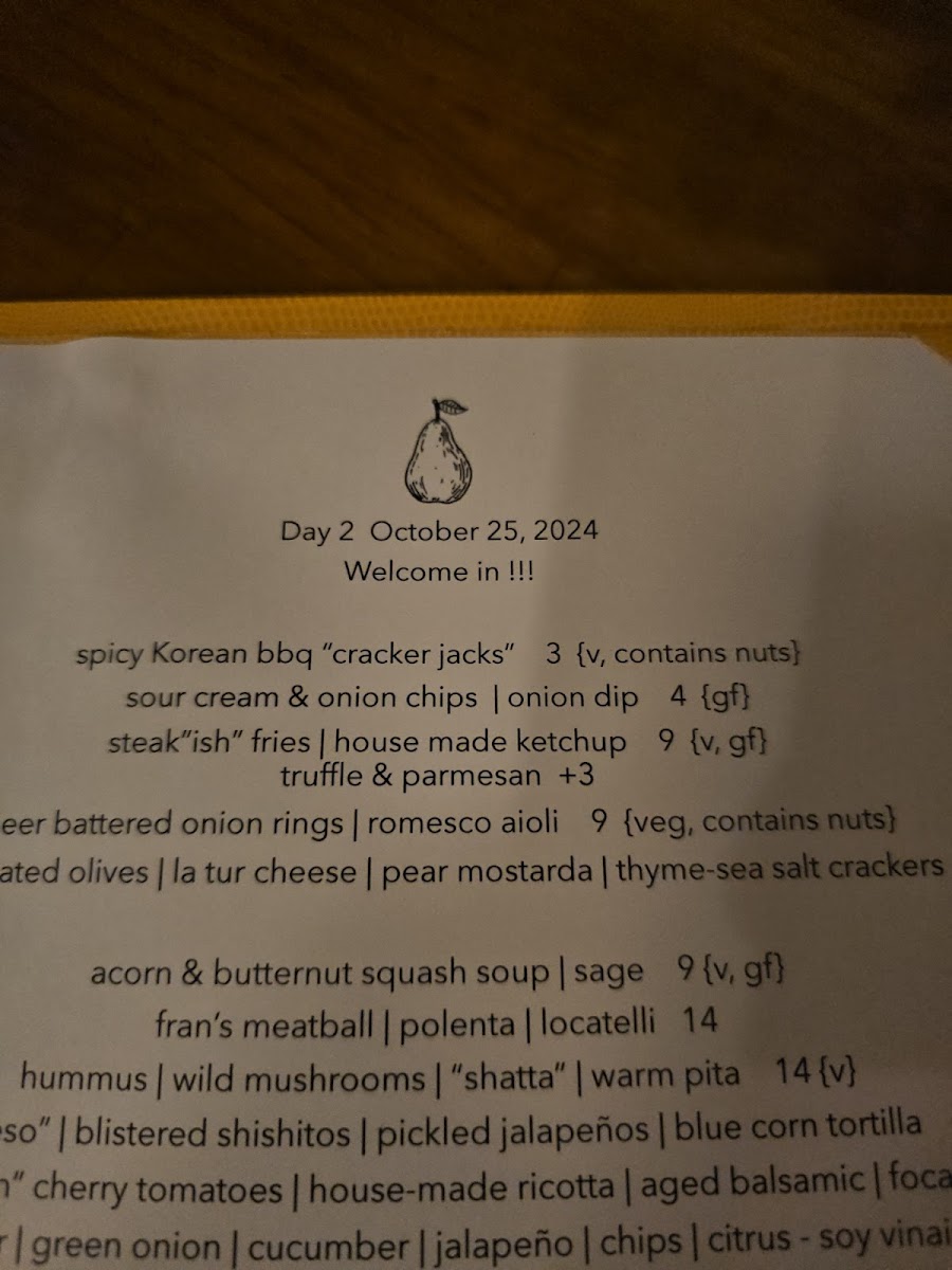 The Pear Menu